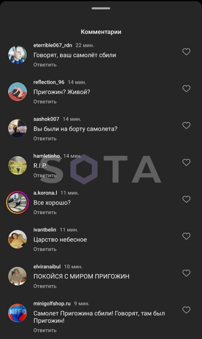 UPD2 Тем временем пользователи инстаграма пришли прощаться с Пригожиным в аккаунт продюсера Иосифа Пригожина.