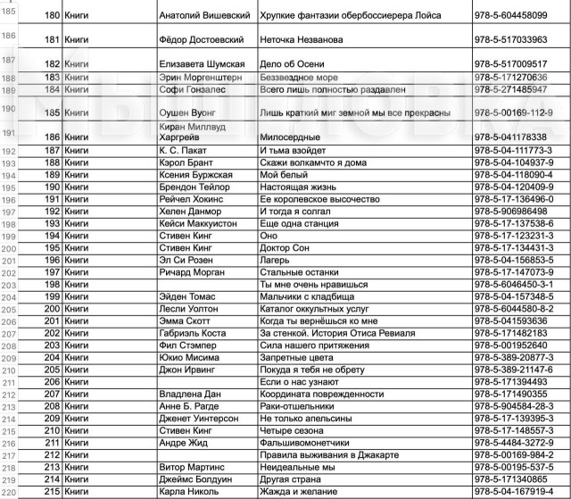 В список попали книги Достоевского, Платона и Стивена Кинга, под запрет угодили как классика, так и новинки.