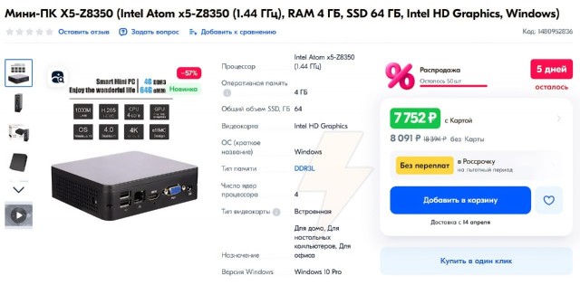 При этом похожий мини-ПК есть и на российских маркетплейсах. Там он в два раза дешевле али — от 8 тысяч рублей.