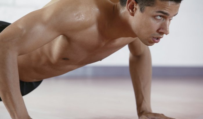 Видов отжимания существует более пятидесяти. Мы остановимся на классическом, тем более, что он вполне подойдет для прокачки многих важных мышц тела. В исходном положении (упор лежа), ладони расставлены чуть шире плеч, стопы на ширине таза. На вдохе опускайтесь вниз, формируя локтями прямой угол. На выдохе — поднимайтесь, но не до конца, чтобы не блокировать локтевой сустав.