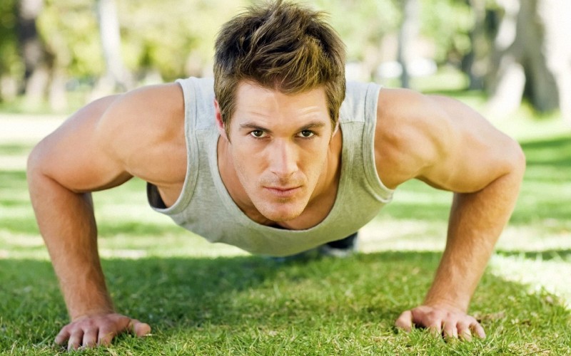 Классические отжимания — это прекрасное упражнение для наращивания мышечной массы и развития мышц плеч, груди и живота. Расставив руки чуть шире плеч, лягте лицом вниз, держите тело прямо почти параллельно полу. Сгибая руки в локтях, опустите себя на пол, пока грудь не коснется земли, а потом поднимитесь. Главное, что тело должно подниматься силой рук, не помогайте себе, прогибая поясницу.