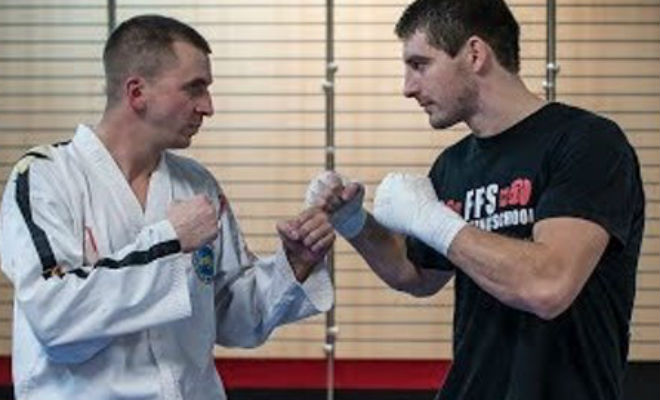 Встреча мастеров боевых искусств больше похожа на представление высокого уровня. Профи выполняют движения так быстро, что их можно просто не заметить невооруженным глазом. Особенно интересно увидеть эффективность реального боя мастера карате и бойца муай-тай.