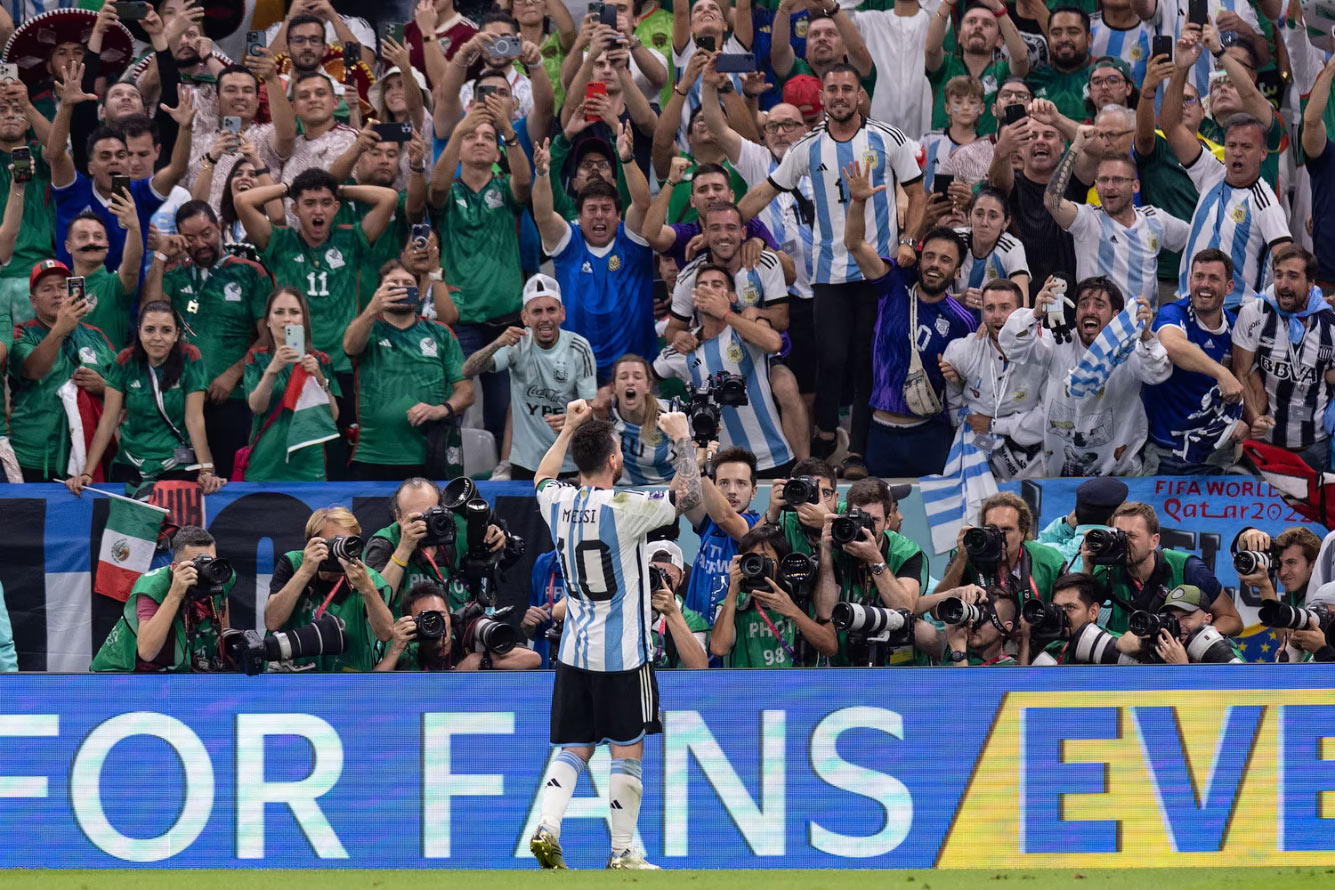 Лионель Месси из Аргентины вместе с фанатами. (Фото Simon Bruty):