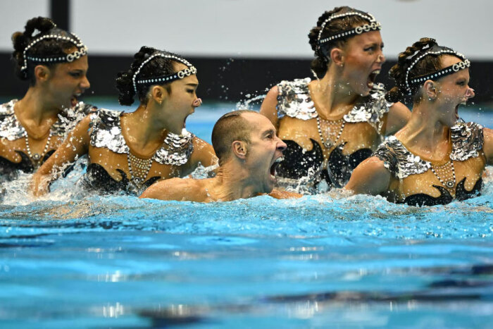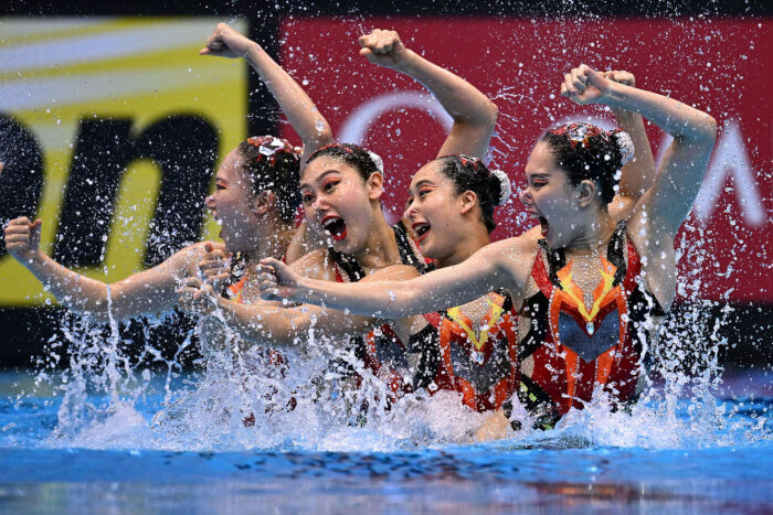 Сборная Японии соревнуется в командном акробатическом финале по художественному плаванию. (Фото Quinn Rooney):