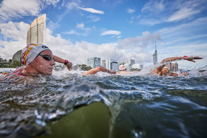Леони Бек из сборной Германии соревнуется в заплыве на 10 км на открытой воде в Seaside Momochi Beach Park. (Фото Adam Pretty):