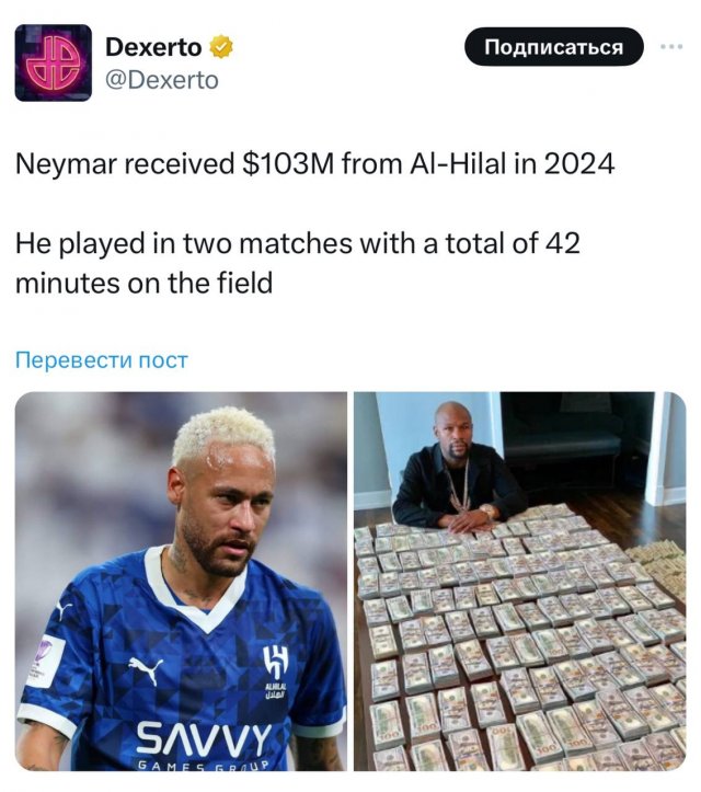 Бразильский футболист Неймар заработал в Саудовской Аравии 103 миллиона долларов (10,5 миллиарда рублей) в 2024 году. Теперь давайте разберемся, как ему удалось получить такие внушительные суммы.