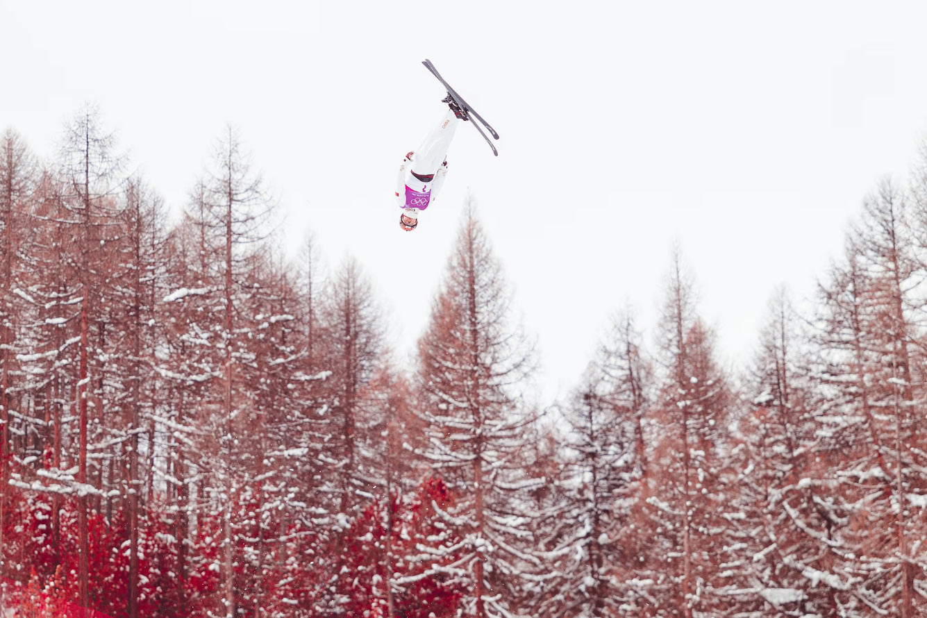 Для создания этого снимка Мэнтао Сюй из сборной Китая, выступающей в женской воздушной акробатике в 12-й день зимних Олимпийских игр 2026 года, использовалась инфракрасная камера с фильтром. (Фото Hector Vivas):