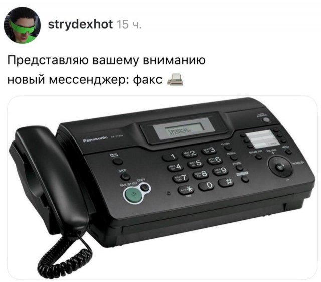 Признавайтесь честно — у кого до сих пор где-то пылится факс? Теперь это почти раритет: можно и удивить гостей, и найти ему неожиданное применение. Но это только разогрев — в посте собраны куда более сочные мемы и шутки, так что залетайте и смотрите до конца.