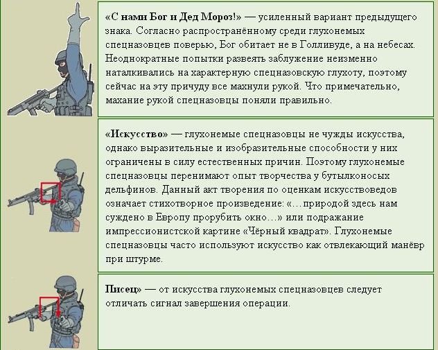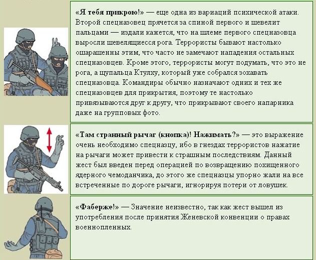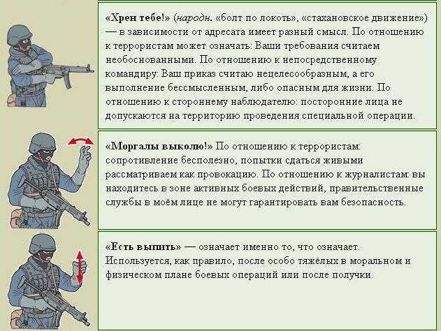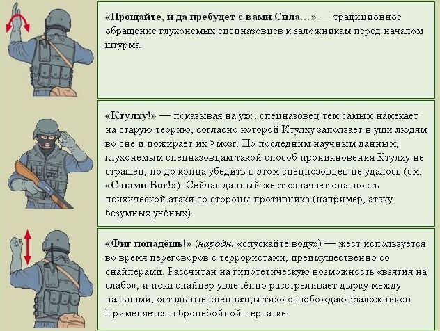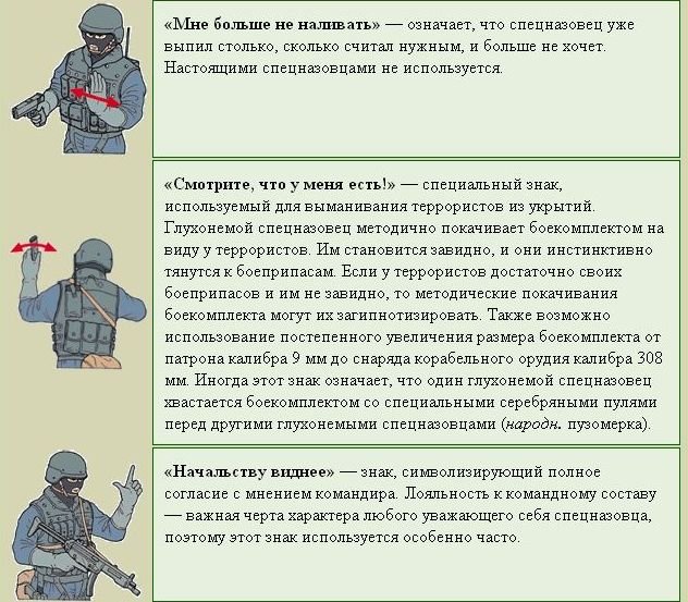 Это круговая оборона,а вообще в каждом подразделении своя наработанная система жестов....