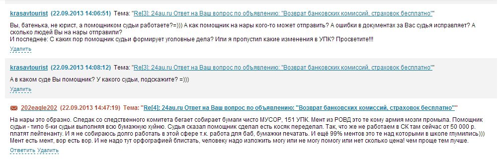 "...Наши клиенты ТУПИЦИ..." Продолжение темы о "профессиональных" юристах. 22/09/2013 21:57 Вас устраивает уровень предоставляемых услуг в Красноярске? ДаНетМне все равно Голосовать Результаты Вот как к нам, клиентам, относятся всякие неучи и бездари. Главная / Юмор +2 Estet 11 1 618