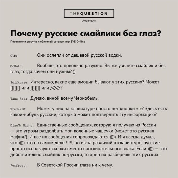 Скобочки 06/02/2015 23:52 Перевод сообщений иностранных иностранцев с форума онлайн-игры EVE Online. Главная / Юмор +7 Admin 3 1 914