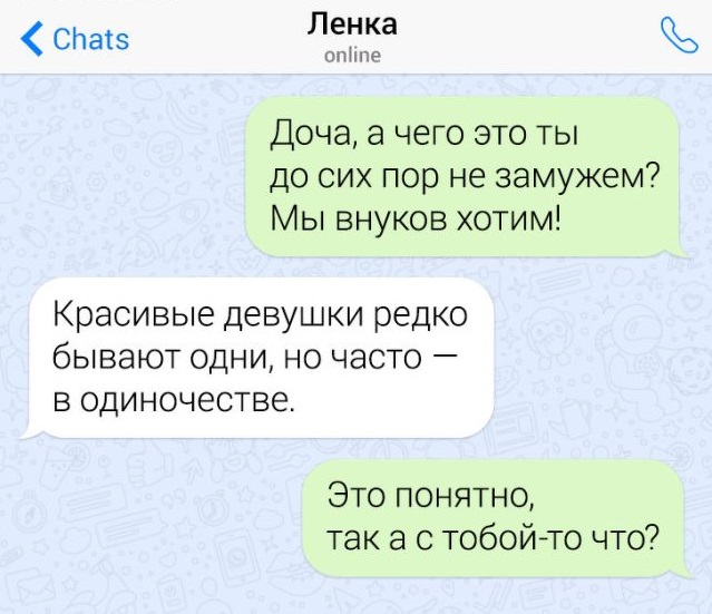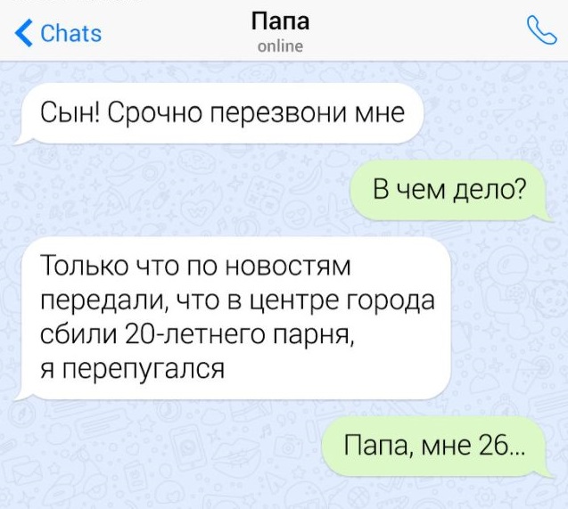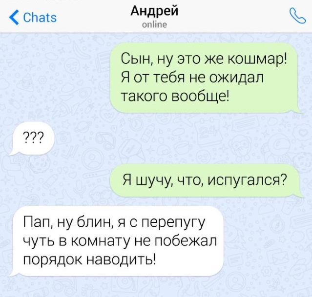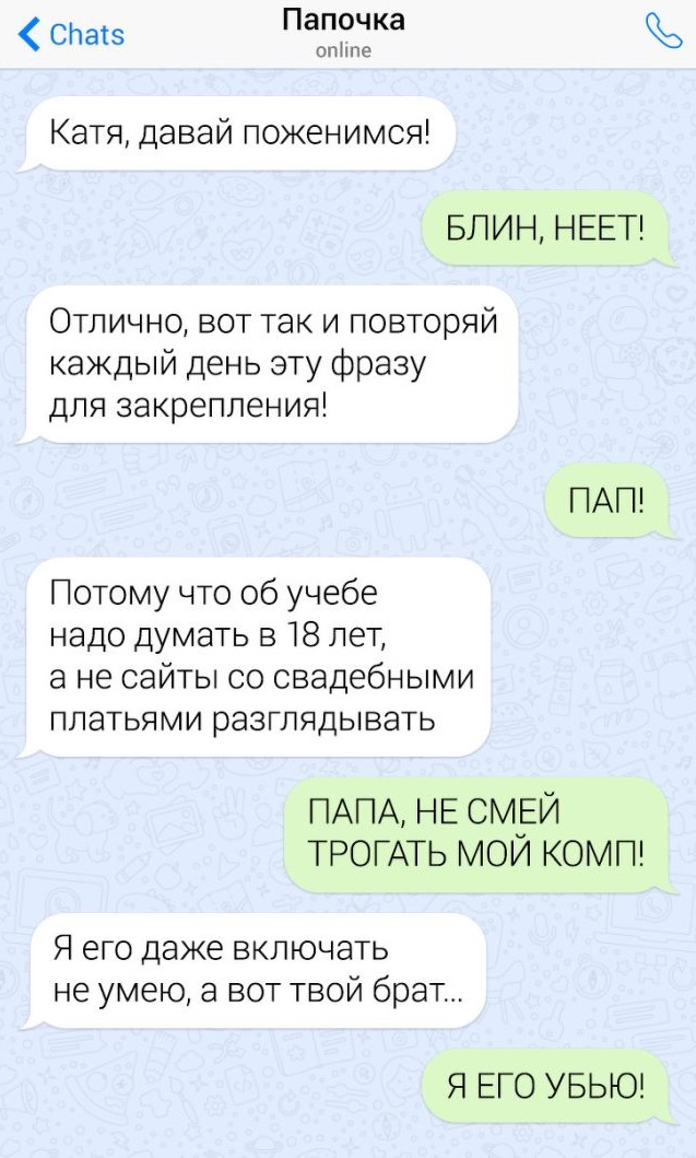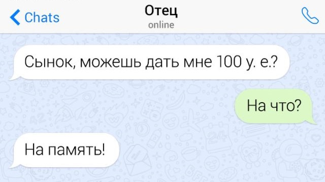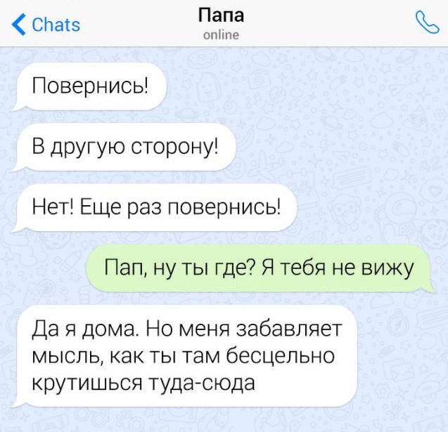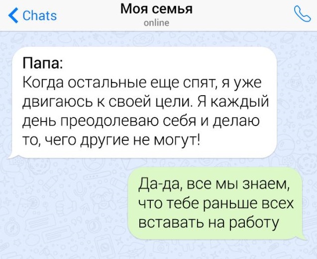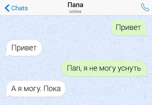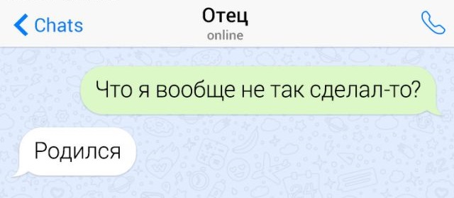 Вы не замечали, что когда мужчина становится отцом, у него появляется какое-то особенное чувство юмора. В их шутках сочетается жизненный опыт и сарказм, тем самым образуя новый вид юмора. Порой их шутки кажутся грубоватыми, но за это мы их и любим. Давайте посмотрим подборку забавных переписок с папами.