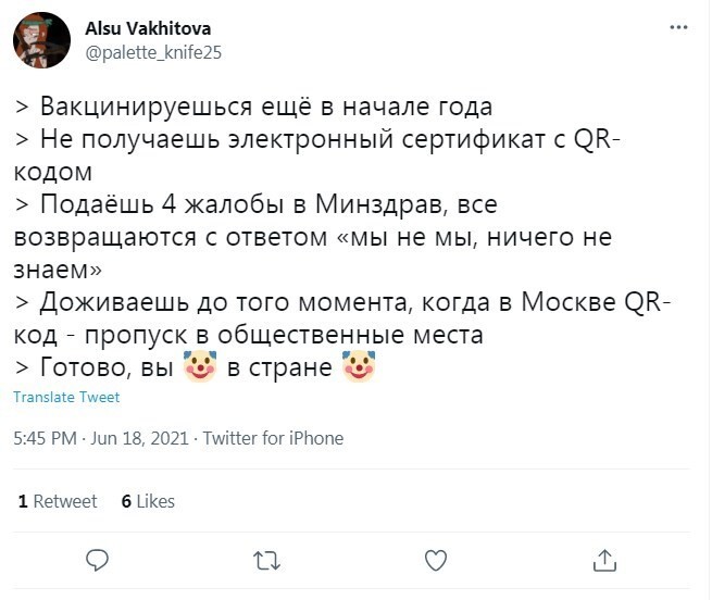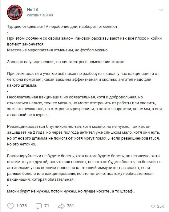 То, что происходит вокруг вакцинации и коронавируса, порой действительно смешит. Например, ходить в кафе и бары можно только со специальным QR-кодом. А вот на футбольные стадионы COVID-19, видимо, не заглядывает, там они не нужны. Вакцинация не обязательна, но все-таки немного обязательна, и даже принудительна - без прививки можно потерять работу. В общем, именно над этим и шутят пользователи социальных сетей.