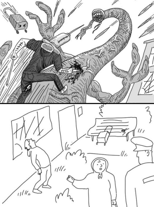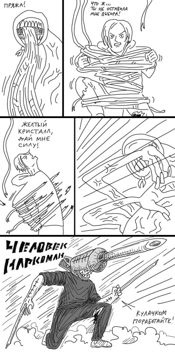 Что в голове у зависших нариков? 12/05/2023 22:50 Речь про таких вот тощих любителей синтетики, которых выгибает дугой, и они направляют свои серые лица с закрытыми глазами к небу. Комикс под катом! Главная / Юмор +3 Admin 0 303