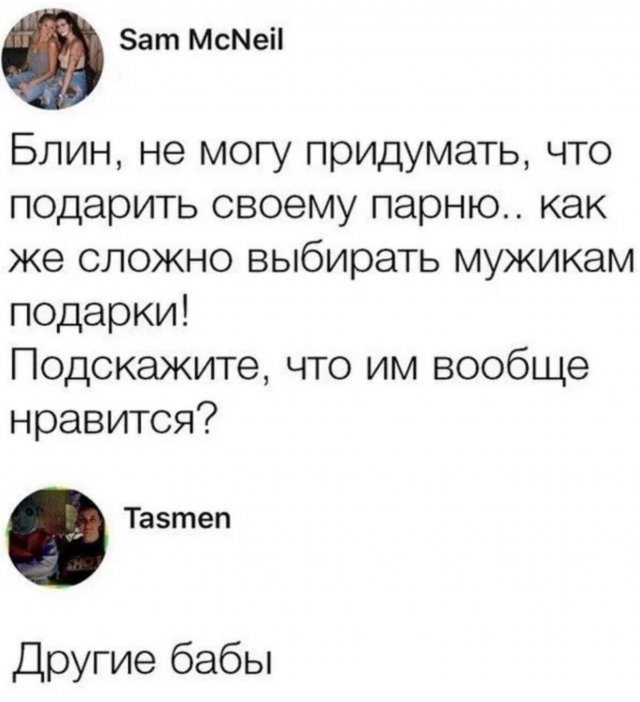 Приколы и мемы про девушек 22/02/2024 18:00 Что творится в головах у девушек? Извечный вопрос. И мужчины никогда не найдут на него ответ. Подобная неразбериха и является причиной появления множества шуток, приколов и мемов про девушек и отношения между полами. Главная / Юмор +3 Admin 0 282