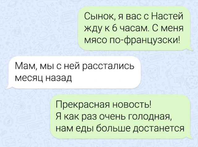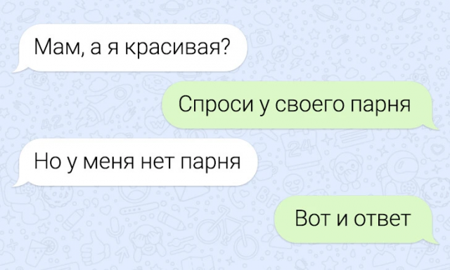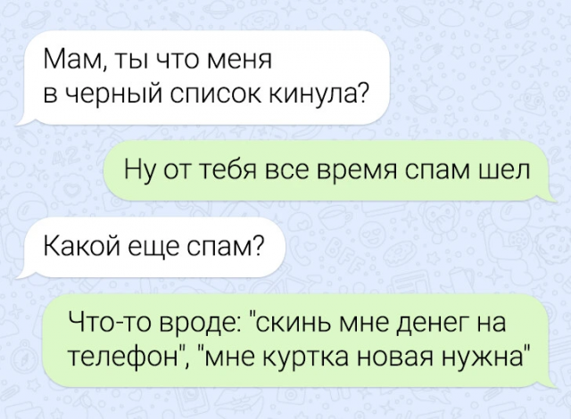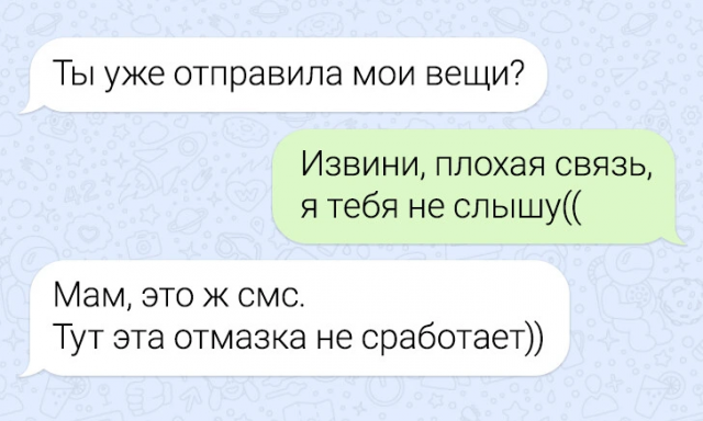 Подборка забавных переписок - это пост, который в представлении не нуждается. И интриги тут также нет, ибо всем мы знаем, что нас ждет внутри. Так не будем же тратить драгоценное время! Всем милости просим в пост и веселого просмотра. Кстати, в этот раз героинями подборки выступили мамы, общение с которыми порой бывает очень смешным и непредсказуемым.