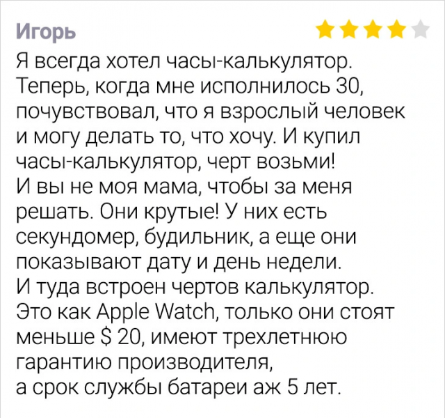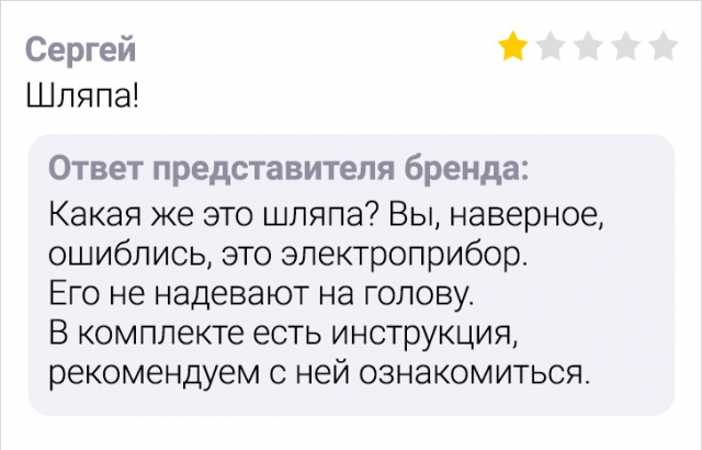 Сегодня невозможно сделать покупку в интернет-магазине, предварительно не почитав отзывы. Ведь мы им доверяем куда больше, чем описанию самого продавца. Но порой в отзывах встречаются такие перлы, что можно забыть зачем ты вообще пришел на маркетплейс.