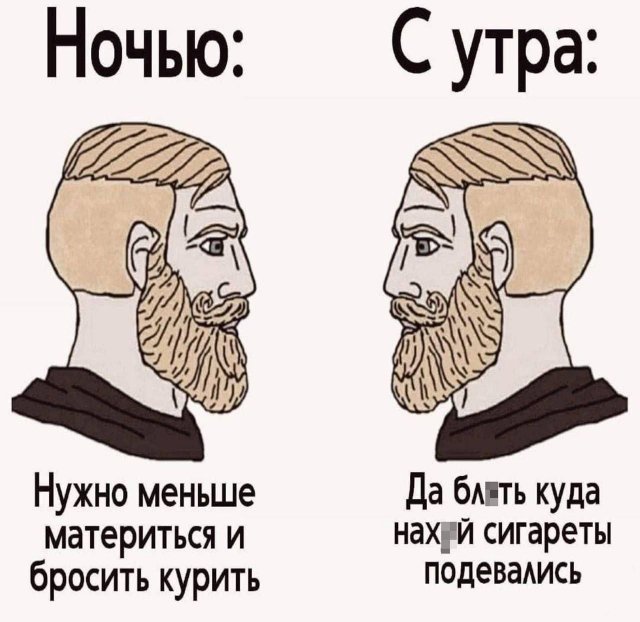 Смешные мемы 10/07/2024 23:00 Если вы как тот человек с первой картинки, то тогда поднимайте руки. Нет, не стыдитесь этого, все хорошо - просто в какой-то момент вам все-таки нужно будет взять себя в руки и начать выполнять работу. Главная / Юмор +2 Admin 0 204