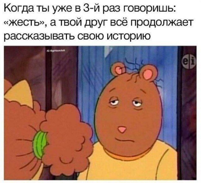 Смешные мемы 26/07/2024 21:20 Кролик сейчас сделал больно не только Винни-Пуху, но и всем нам. Удалось ли кому-то нормально отдохнуть летом? А ведь прошло уже большая его часть... И это очень печально. Главная / Юмор +3 Admin 0 250