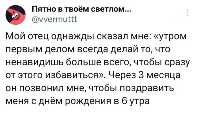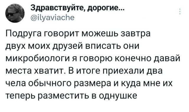 Смешные твиты на любые темы: подборка для хорошего настроения 29/07/2024 23:00 Твиты - отличное средство для быстрого поднятия настроения. Так что, если вы хотите немного отвлечься и взбодриться, тогда милости просим в новую подборку. Всем веселого просмотра. Главная / Юмор +2 Admin 0 156