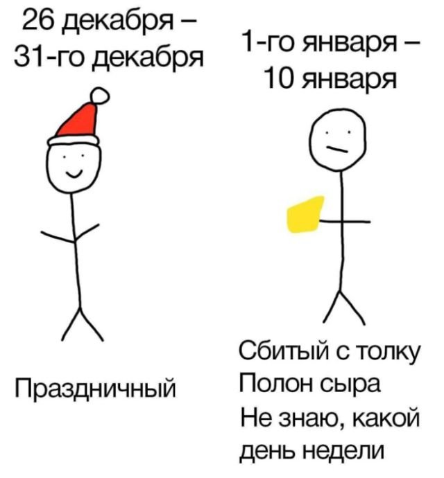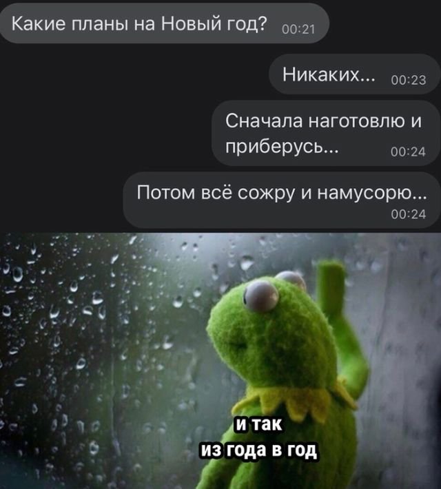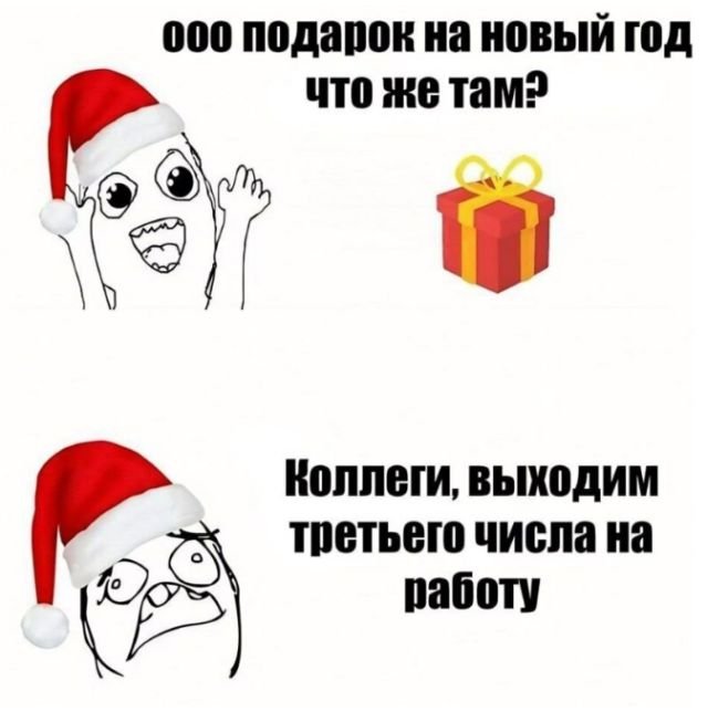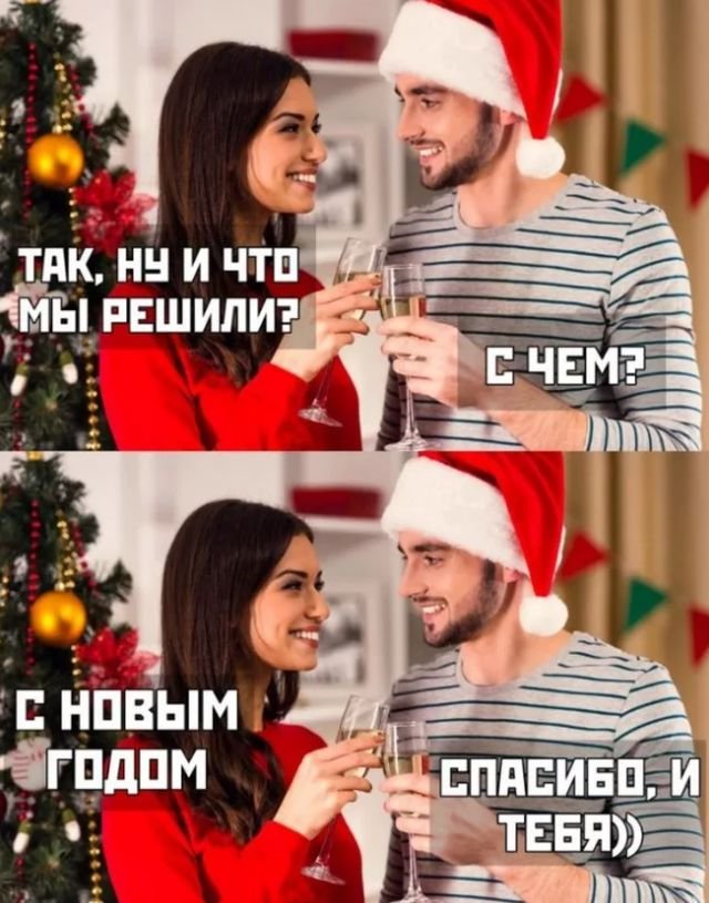 До наступления Нового года и 2025-го осталось совсем немного — всего пару дней. Скоро все соберутся за праздничным столом с близкими, выпьют за счастье и успех, а потом исчезнут тарелки с оливье. Или у вас традиции другие? Если да, расскажите в комментариях! К тому же, я подготовил для вас подборку смешных мемов, которые точно поднимут настроение в преддверии нового года.