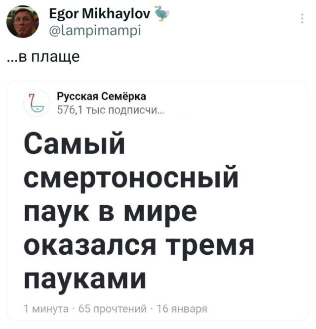 Твиты, от которых невозможно не засмеяться 30/01/2025 16:00 Новая порция юмора из соцсетей — без лишних слов. Прокручивайте, смейтесь и делитесь с друзьями. Приятного просмотра! Главная / Юмор +1 Admin 0 278
