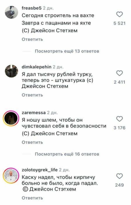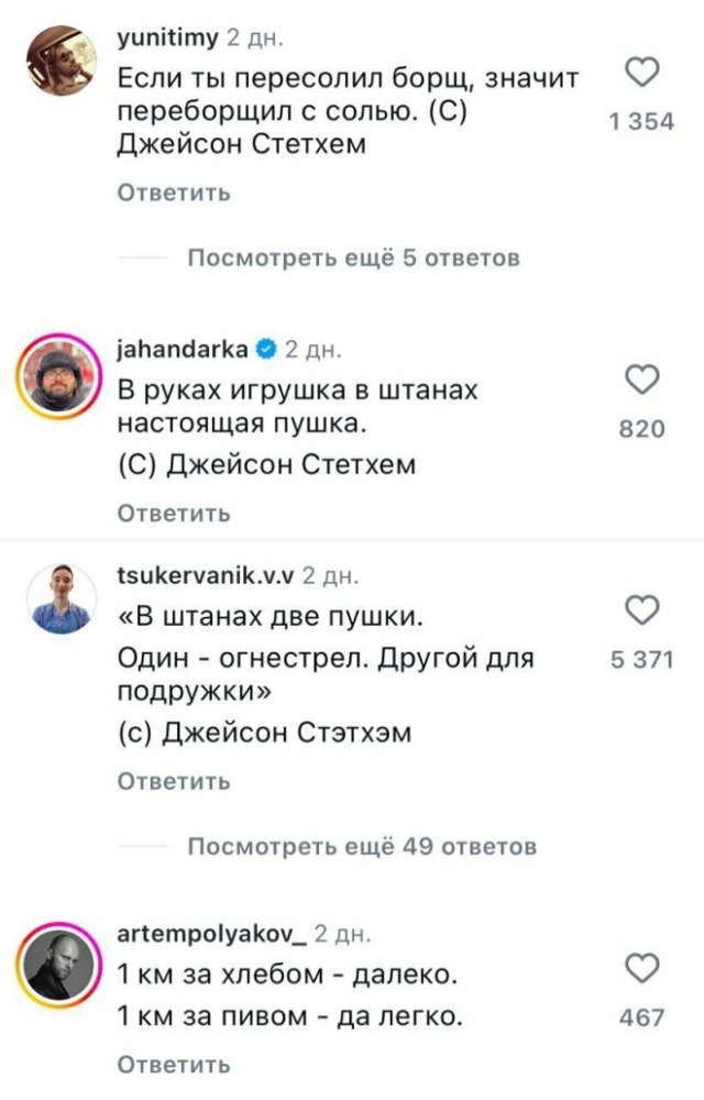 Джейсон Стейтем порадовал фанатов новой фотографией 03/02/2025 11:00 В комменты по классике пришли русские с пацанскими цитатами про работяг. Главная / Юмор +4 Admin 0 303