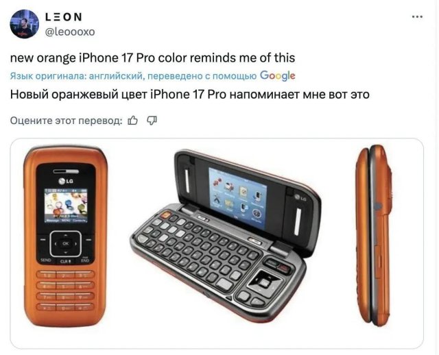 📱 Мемы про новый iPhone 17 15/09/2025 21:40 Apple представила iPhone 17 — и, конечно, интернет сразу же взорвался. Обсуждают всё: от тончайшего iPhone Air до шнурка за $79 и нового «оранжевого» цвета. Собрали самые смешные шутки и мемы. 😂 Главная / Юмор +1 Admin 0 200