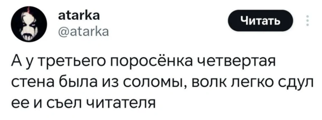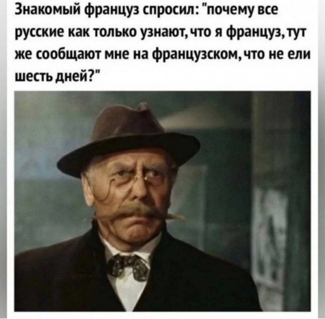 📚 Книжный юмор 26/09/2025 23:30 Шутки, мемы и твиты для тех, кто любит книги и иронию. Отличный повод сделать паузу и похихикать. Спойлер! Фраза "Je ne mange pas six jours" входит в обязательный набор русскоговорящего туриста во Франции Главная / Юмор 0 Admin 0 123