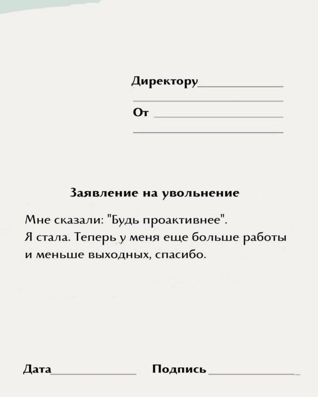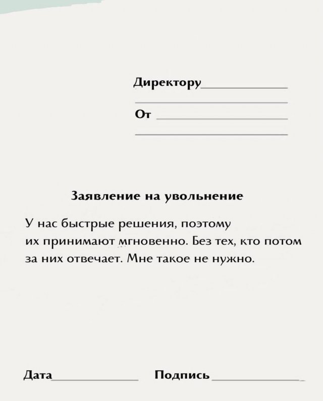 Уходить с работы страшно, но иногда это действительно лучший выход. На такой случай подготовили подборку шаблонов заявлений на увольнение с предельно откровенными причинами — без лишнего официоза и пустых формулировок.