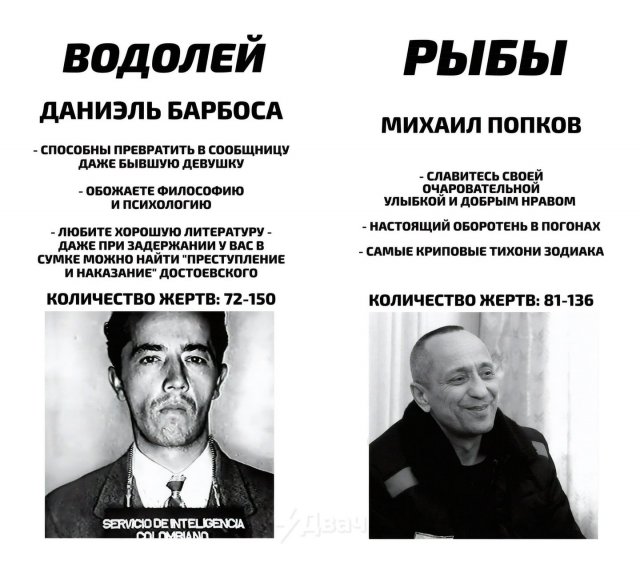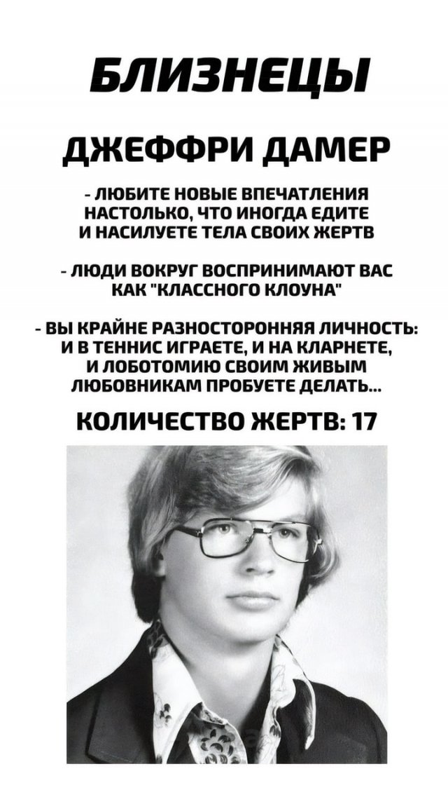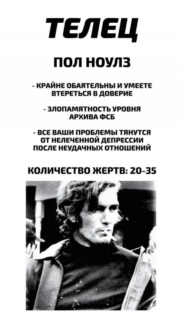 Новый астрологический «разбор» подъехал: теперь можно узнать, какой у вас тип маньяка по знаку зодиака. Ищем себя, делимся с друзьями — и не расслабляемся. Как говорится, в тихом омуте…