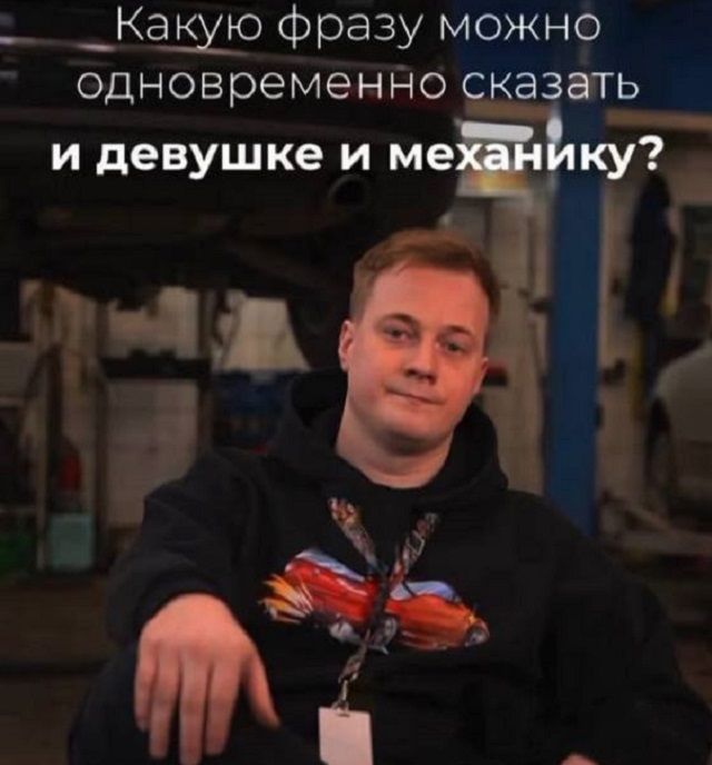 Парень работающий на СТО, придумал забавный флешмоб. Он попросил подписчиков придумать фразы, которые можно сказать одновременно девушке и механику. Народ весело подхватил идеи и выдал много смешных комментариев. Давайте что ли и мы подкинем парочку!