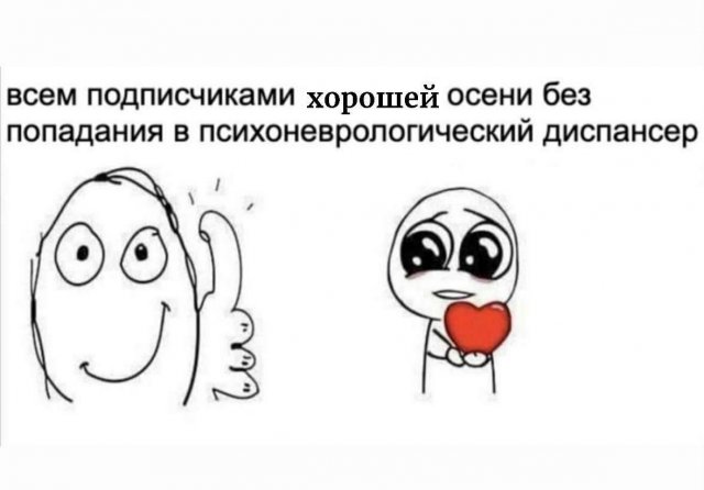 Главное осенью — не развалиться морально, физически и финансово. Так что заваривайте чай, укутывайтесь в плед и ловите порцию свежих мемов и шуток. Проверено — настроение гарантировано!