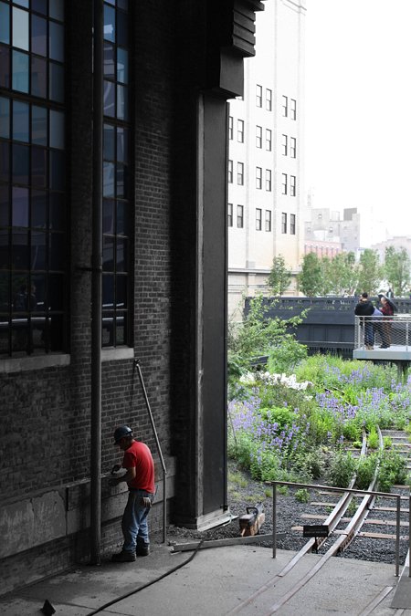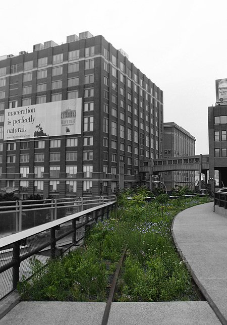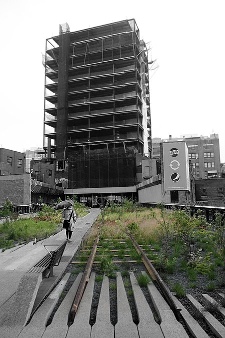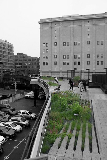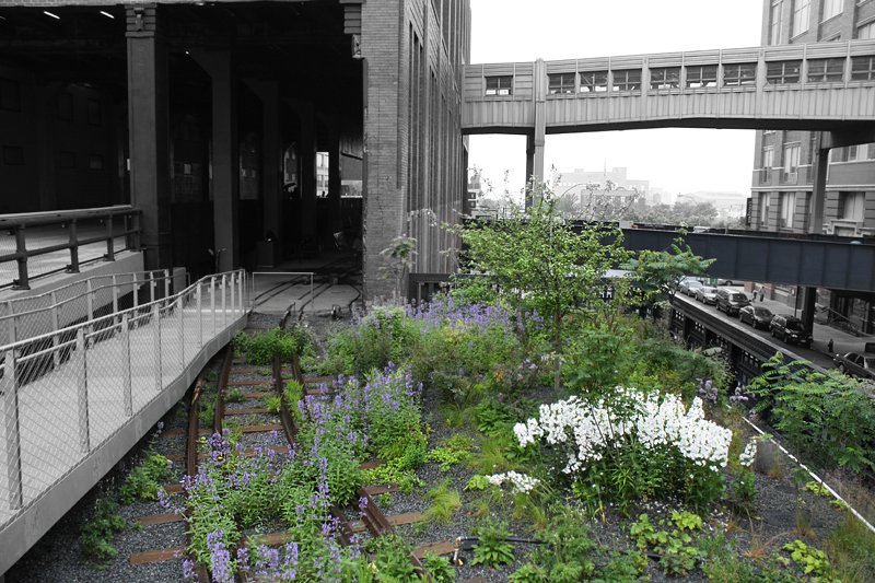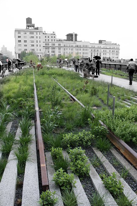 Несколько дней назад в Нью Йорке произошло долгожданное событие - открылся для всеобщего доступа парк Хайлайн, разбитый на эстакаде бывшей железной дороги. "Давным-давно, в 1930х на Западной стороне Манхэттана построили надземную грузовую ветку железной дороги - Высокую Линию - чтоб подвозить и увозить всякое добро непосредственно к/от заводов и складов. А потом бензин подешевел, шоссе начали строить, заводы в Нью Джерси переехали и железная ветка стала не нужна". В бытность эксплуатации на полную катушку Хайлайн выглядел так