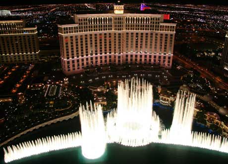 Поющий фонтан ?Белладжио? дает представление каждый вечер, вызывая восхищенные возгласы всех, кто собирается в это время на берегу протянувшегося примерно на 400 метров искусственного озера.
