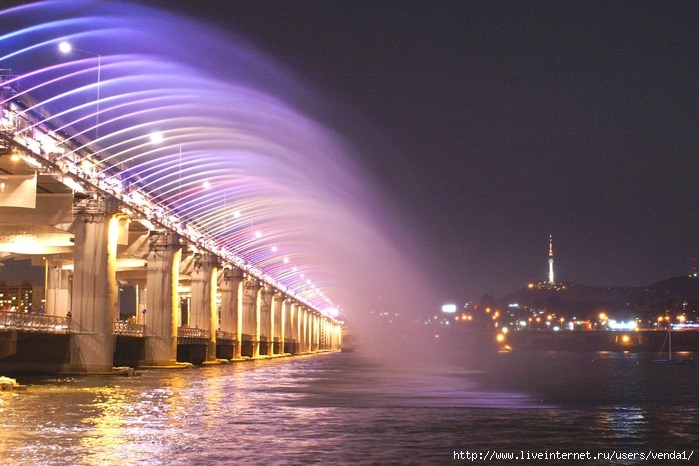 В сентябре 2008 года, благодаря усилиям корейских архитекторов мосту Bampo была дана новая жизнь, а вернее новый вид, когда он превратился в грандиозный фонтан. 9800 струй ежеминутно выплескивают 190 тонн воды. Благодаря своей протяженности (около полутора километров) фонтан вошел в книгу рекордов Гиннеса как самый длинный фонтан в мире. Извержение воды сопровождает музыкальная программа, струи описывают фигурные траектории в такт музыке, а по вечерам включается подсветка.