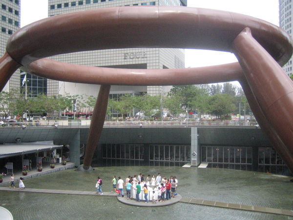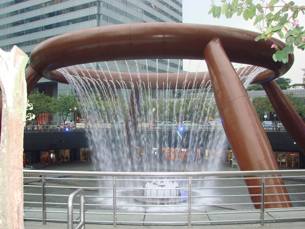 Это спроектированные Isamu Noguchi фонтаны, вся изюминка которых заключается в том, что они стоят на опоре, которая скрывается за водой и к тому же абсолютно прозрачна. В следствии чего, на первый взгляд, может показаться, что квадратные конструкции держаться в воздухе за счёт напора воды.