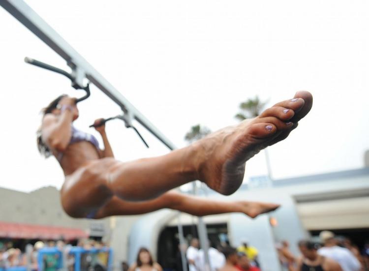 В середине мая для посетителей вновь открылся легендарный тренировочный зал на Muscle Beach Venice, где в свое время не мало часов провел, работая над своим телом, нынешний губернатор Калифорнии. Одна из ярких достопримечательностей Лос-Анджелеса, известная любому члену всемирного бодибилдерского сообщества, была закрыта на две недели в связи с реконструкцией. В новое оборудование и новое напольное покрытие знаменитого зала было вложено 50 тысяч долларов. 17 мая была перерезана красная лента, и обновленный "Muscle Beach" вновь открыл двери для любителей железного спорта. А это фотографии с соревнования в честь дня независимости 4 июля.