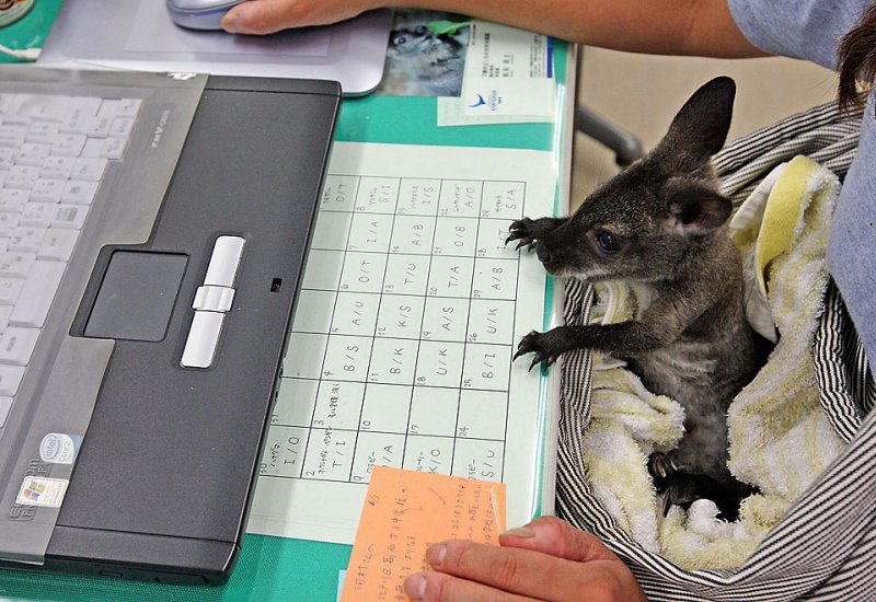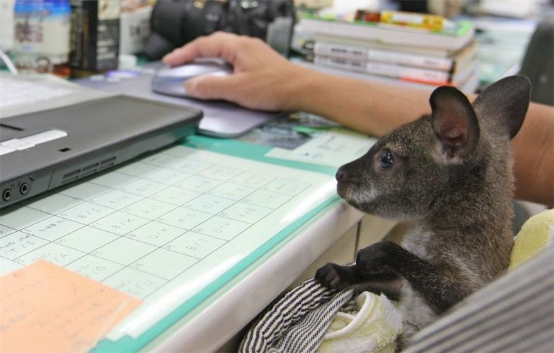 Вундеркинд (3 фото) 06/08/2009 19:47 В японском зоопарке Эдогава мать бросила кенгуренка и его по традиции взялись воспитывать смотрители зоопарка. Так что бы вы думали, он мало того что все время в сумке возле своей новой мамашки... Главная / Картинки 0 Admin 5 1 915