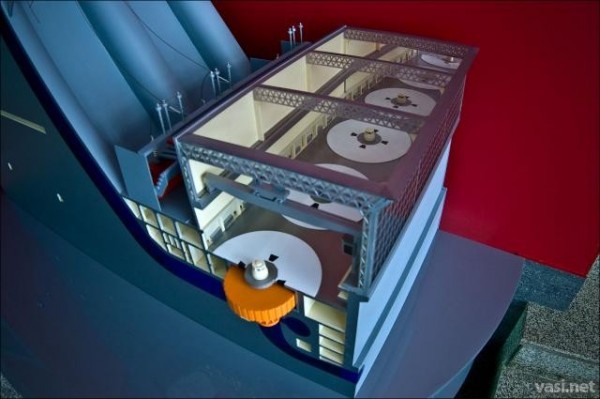 Крупнейшие производственные объединения СССР создавали для новых гидростанций новое супермощное оборудование. Так, все уникальное оборудование СШ ГЭС было изготовлено отечественными заводами: гидротурбины - производственным объединением турбостроения ?Ленинградский металлический завод?, гидрогенераторы - Ленинградским производственным электротехническим объединением ?Электросила?, трансформаторы - производственным объединением ?Запорожтрансформатор?. Рабочие колеса турбин были доставлены в верховья Енисея водным путем длиною почти в 10 000 километров, через Северный Ледовитый океан. Благодаря оригинальному техническому решению - установке на первых двух турбинах временных рабочих колес, способных работать при промежуточных напорах воды - появилась возможность до окончания строительно-монтажных работ начать эксплуатацию первой очереди станции. Благодаря этому народное хозяйство страны получило дополнительно 17 млрд. кВт-ч электроэнергии. Выработав к 1986 г. 80 млрд. кВт-ч, стройка полностью возвратила государству затраты, которые пошли на ее возведение. Саяно-Шушенская ГЭС стала верхней в каскаде енисейских гидроэлектростанций и одной из крупнейших в мире: установленная мощность - 6.4 млн. кВт и среднегодовая выработка - 22.8 млрд. кВт-час электроэнергии.