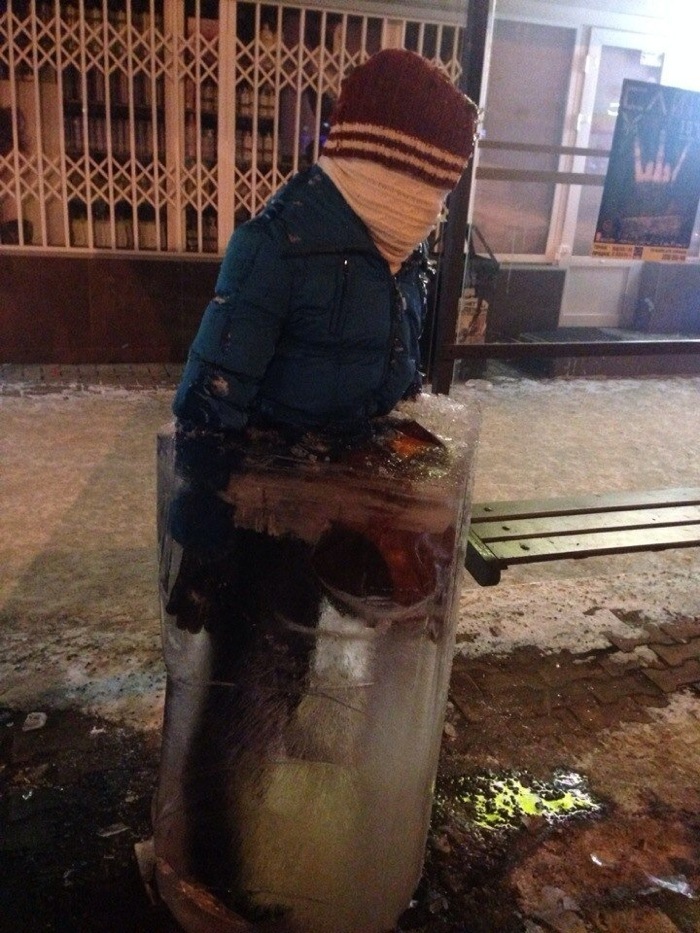 Людей, стоящих во льду, видят на остановках на улице Перенсона, на Предмостной и на "Локомотиве". Как выяснилось, это не памятники замерзшим пассажирам опаздывающих автобусов и троллейбусов. Таким способом группа активистов из соцсетей зазывает к себе участников. Сообщество полезное. Его создатели предлагают делиться способами отогрева в сильные морозы. Обсуждают варианты одежды и альтернативные способы утепления, рассказывают, как греть автомобили в минусовые температуры. Лозунг группы "Хватит холодать".