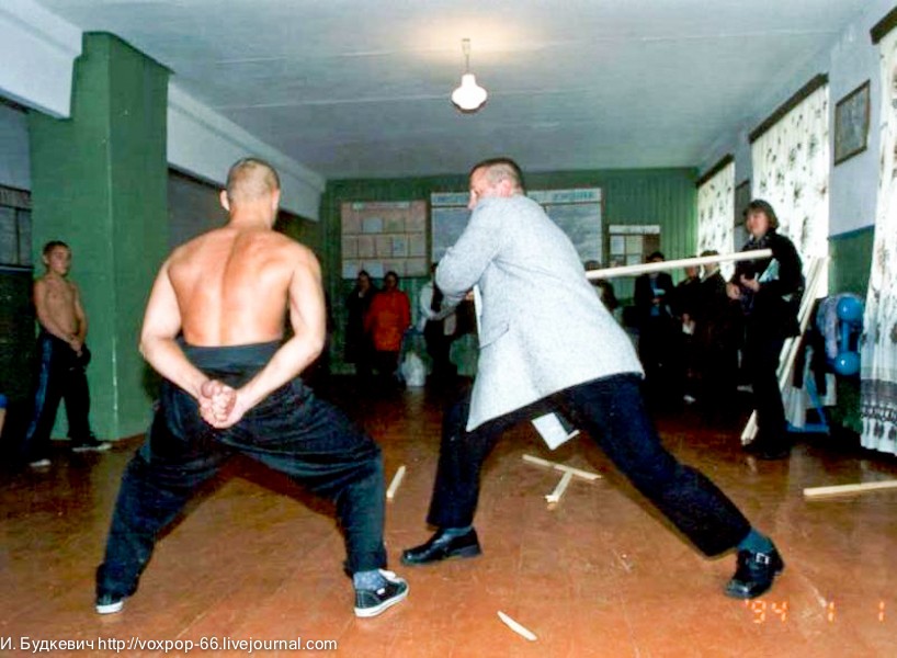 03. Технику "железной рубашки", когда я ломал об своих воспитанников деревянные бруски, мы показывали всем - от местных начальников, до комиссий из Совета Европы. Шок был гарантирован. )) Примерно в 2003 году аж программа "Время" 1 канала делала репортаж об этом. (Видео)