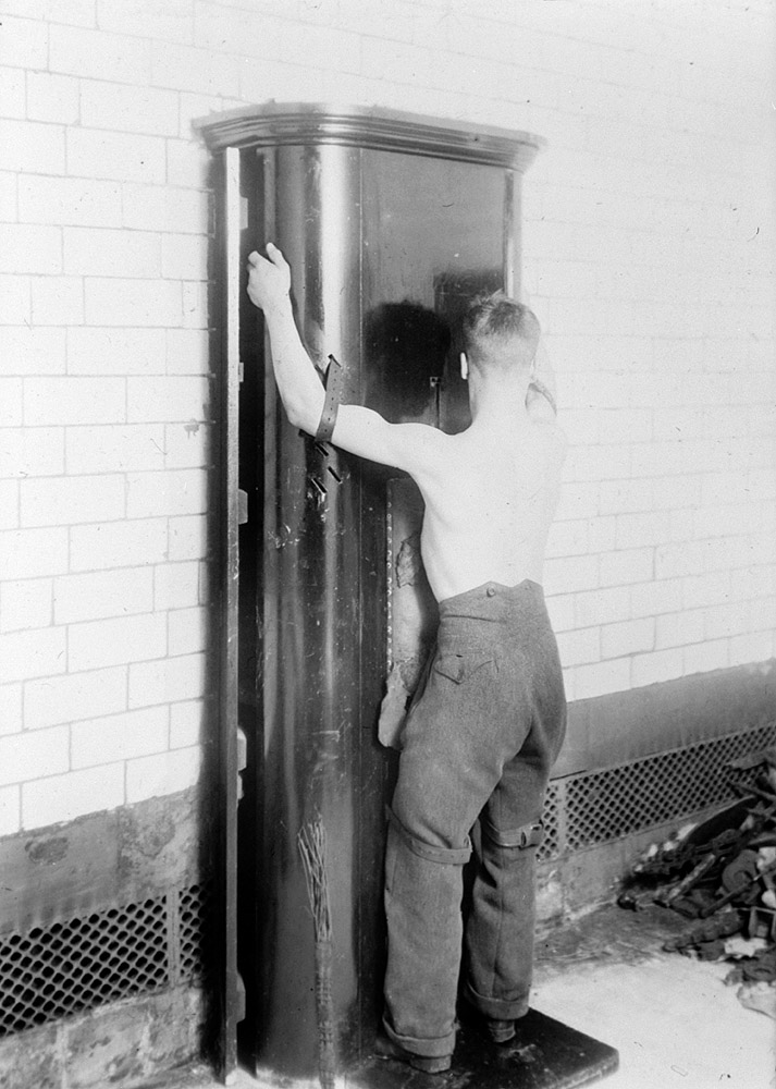 Это специальное устройство для облегчения процесса порки в полицейском участке. Шотландия, конец XIX века. Устройство позволяло надежно фиксировать человека, но при этом не забыли про комфорт – под животом мягкая подушка. Порка в те времена активно использовалась судами в качестве наказания за незначительные преступления.