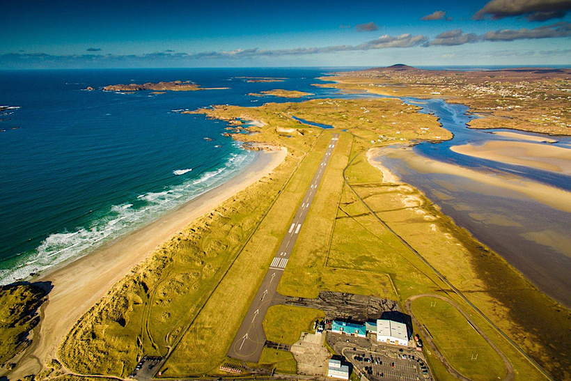 В крошечный аэропорт на севере Ирландии летают только местные авиакомпании, а с апреля до октября сюда можно добраться на чартере из Роттердама. Графство Донегол сложно назвать туристическим: здесь нет широко известных достопримечательностей или городов, отмеченных в путеводителях. Тем не менее, опытные путешественники долетают до этого места именно ради видов на подлете и аэропорта: здесь настолько красиво, что Донегол входит во все подборки самых живописных взлетно-посадочных полос.