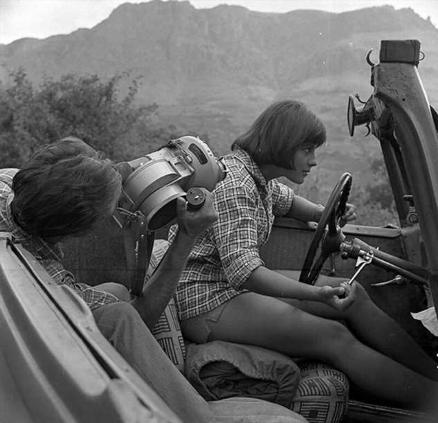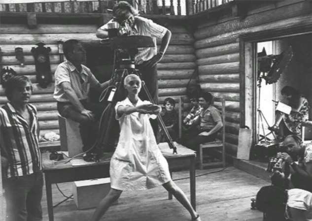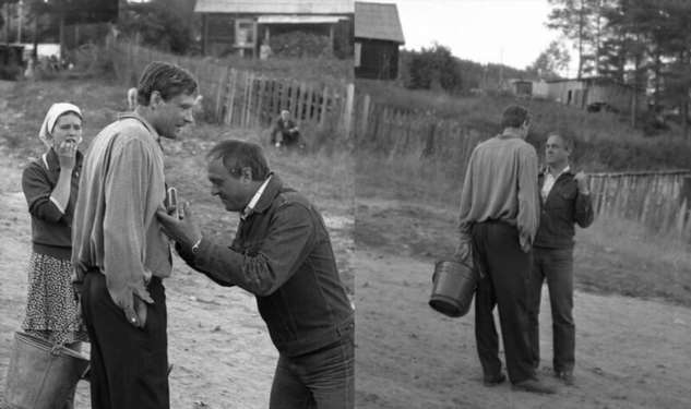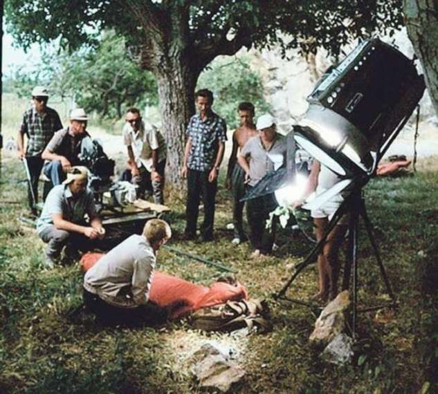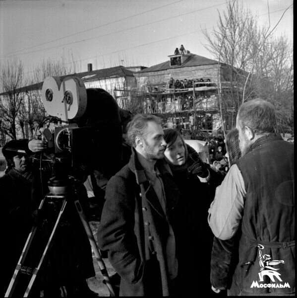 Лариса Шепитько и Борис Плотников на съёмках «Восхождения». Обратите внимание на зрителей на заднем плане