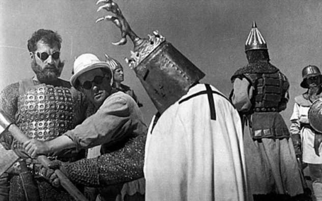 Кстати, вспомните знаменитую фразу Невского из этого фильма. Он там говорит: «Кто с мечом к нам войдёт, от меча и погибнет». А все ошибочно говорят «придёт». А ещё приписывают эти слова реальному, а не киношному Александру Невскому. Реплику придумал Сергей Эйзенштейн и его соавтор Пётр Павленко. Они переделали евангельскую фразу, которую Иисус говорит Петру, давшему мечом отпор солдатам, пришедшим схватить Христа. «Ибо все, взявшие меч, мечом погибнут», — так сказано в Евангелии от Матфея. А ещё в Древнем Риме говорили «Кто воюет мечом, от меча и погибает».