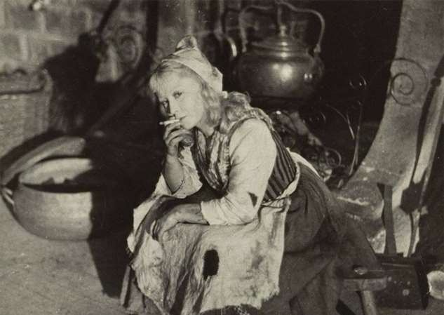 Янина Жеймо курит в образе Золушки на съёмочной площадке одноимённого фильма 1947 года