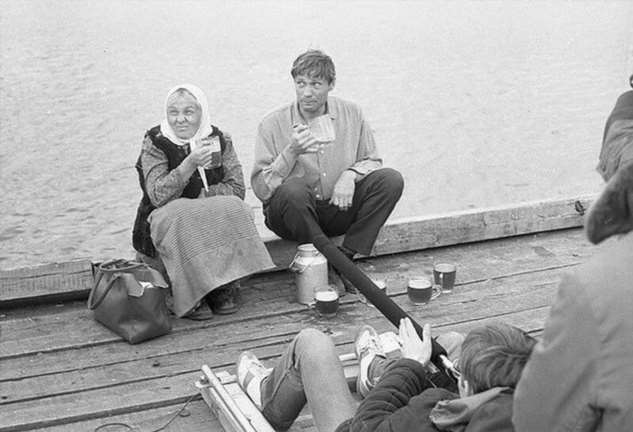 Наталья Тенякова и Александр Михайлов пьют пиво (или скорее всего пивозаменитель) на съёмках «Любовь и голуби»