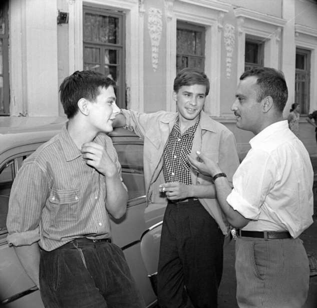 Никита Михалков, Алексей Локтев и Георгий Данелия на съёмках «Я шагаю по Москве»