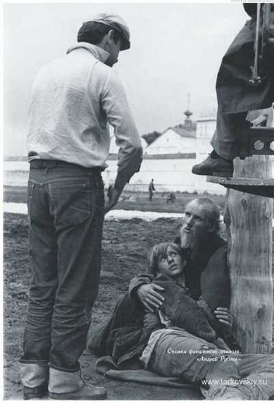 Андрей Тарковский даёт указания Анатолию Солоницину и Николаю Бурляеву на съёмках «Андрея Рублёва»